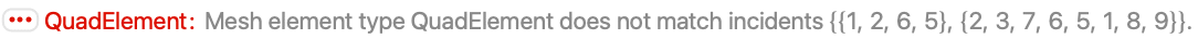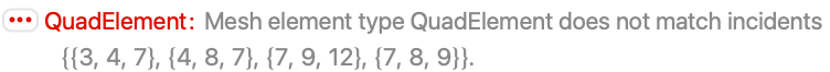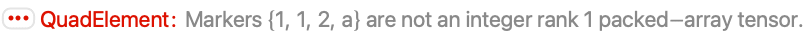 - In QuadElement[{e1,…,en}], all elements ek need to be of the same order.