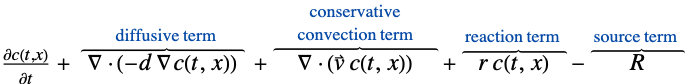 - The conservative time-dependent mass transport model MassTransportPDEComponent is based on a conservative convection-diffusion model given by: