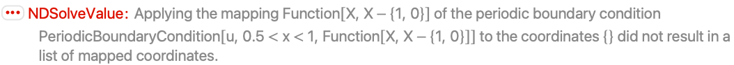 - In PeriodicBoundaryCondition[a+b u[x1,…],pred,f], for any point xtarget in the part of ∂Ω where pred is True, then xsource=f[xtarget] should be a point in ∂Ω where pred is not True.